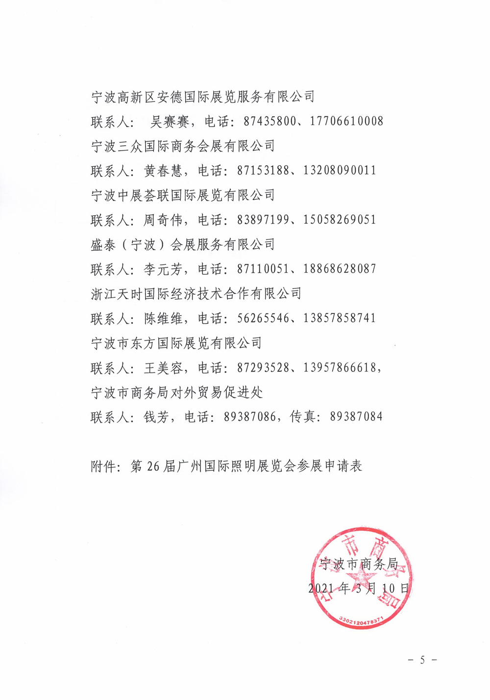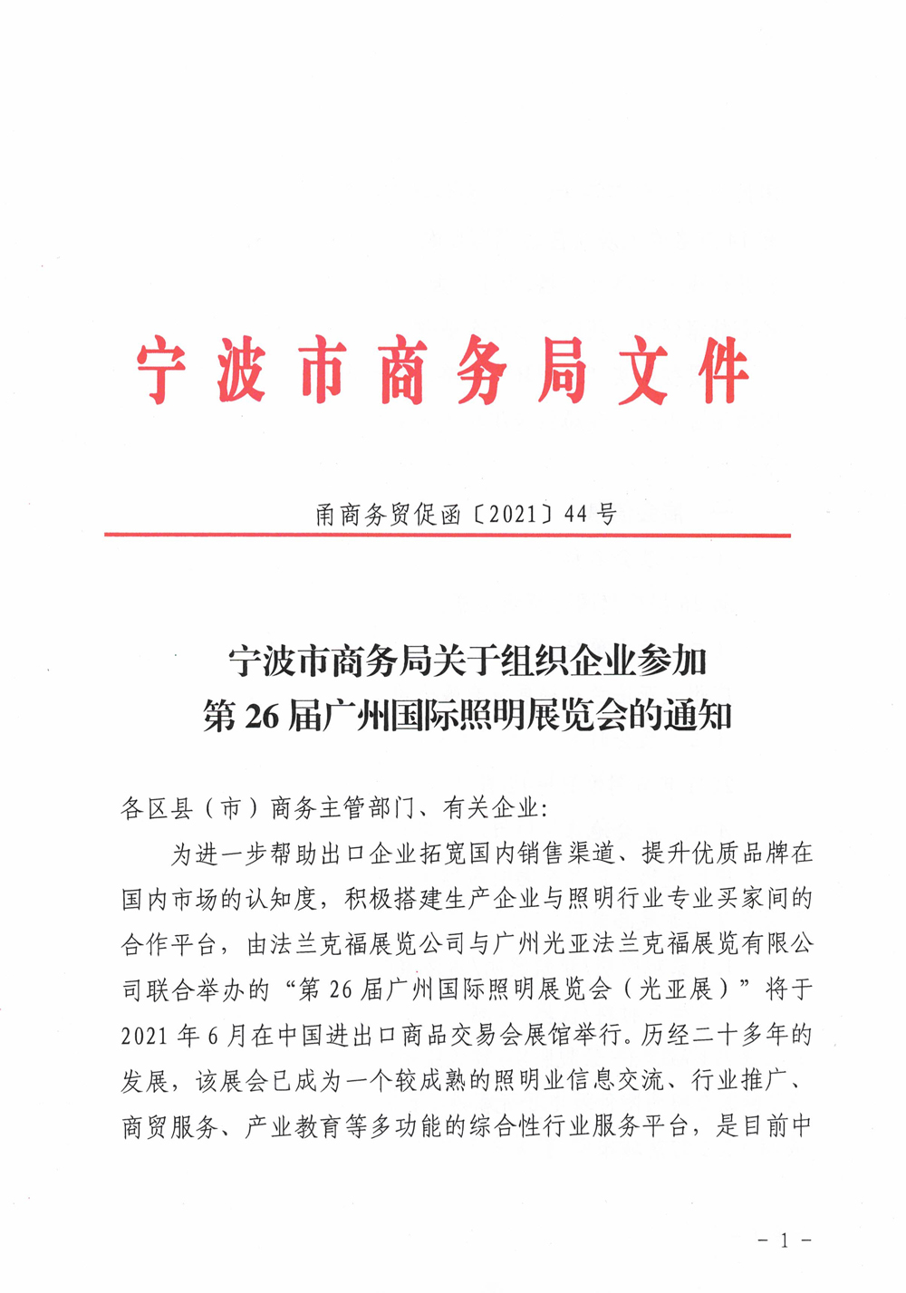 寧波市商務局關于組織企業參加第26屆廣州國際照明展覽會的通知